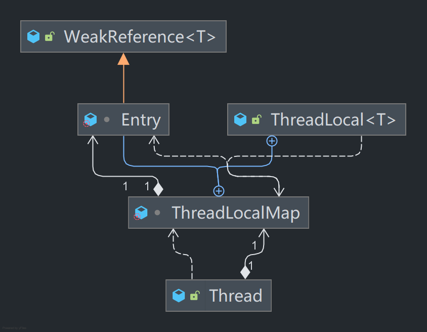 到这里可以整理出一个关系链,Thread 中有一个 ThreadLocalMap 成员 threadLocals,它存储各个 ThreadLocal 对应的值,由于不同的线程的 threadLocals 不同,因此相同的 ThreadLocal 在不同线程中获取到的值是不同的,这就是 ThreadLocal 中的值线程独享的原理。